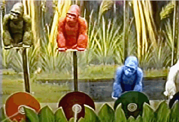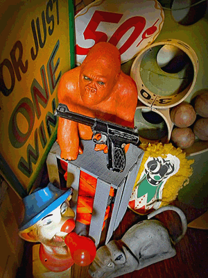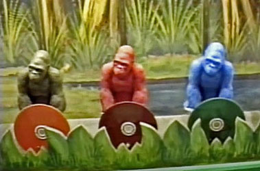 The Wildwood Boardwalk has long been home to an abundance of games of chance and skill throughout the years and we all had our favorites. The Record Wheel in front of Morey's Pier was, by far, my favorite game to play ( I mean who wouldn't want a chance to win a record album of your choice for a quarter), but there was one game that stood out visually for me and that was the Monkey Race Water Gun Game. I believe it first appeared in the late 1970's (probably not long after the movie release of the highly anticipated 1976 Dino De Laurentiis remake of King Kong). The boardwalk game featured colorful gorillas that would race up poles as the players fired a steady stream of water from their pistols into fixed targets located at the base of each pole - "Shoot the water in the hole Watch the monkey climb the pole". It was just a simple boardwalk water gun game but, for whatever reason, it screamed Wildwood and is a memory that really resonates with me. The gorillas were actually repurposed plastic King Kong coin banks which were made in the 1970's by the Universal Statuary Corp. and were only produced in black plastic, but for the game they were repainted in a variety of colors so players could pick their favorite monkey. For many years Louis Penn owned and operated multiple games along the Cedar Avenue boardwalk located under Castle Dracula and for a number of years this was one of them. The photos of the game pictured here were screen shot from a video by Vincent A. Desiderioscioli and, thanks to him, we can all see this game in action once again. Just click down below on his video 'Photon Of Wildwood'. |