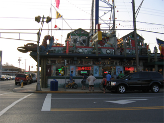 Locals and visitors alike recall with fondness the days of the Tom Cat Restaurant, located on the north side of Rio Grande Avenue entering Wildwood. But for me - my favorite was located just across the street from the Tom Cat on the south side, and it was called the Cold Cat (pictured above). I would beg my Mom to take me there whenever we were out and about for the day. Not only did they have great custard and shakes, but the burgers were something special - thin and saltly and oh so good. The Cold Cat was owned and operated by the Bixler family and I'll never forget it. Years later the building became a Payless Liquor Store (pictured above right) before eventually being demolished to clear the way for a new Wawa. Pictured right is the west entrance/exit to the Wawa on Rio Grande Avenue. This is the same spot on which the Cold Cat once stood. |