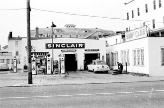 The Sinclair Service Station pictured above was once located on the NW corner of Schellenger and Atlantic Avenues in the 1950's, 60's and into the early 70's. Pictured above right, the newly constructed El Rancho Steakhouse that replaced the Sinclair Station. Shown to the immediate right is a current photo of the popular Schellenger's Restaurant, which replaced the El Rancho in the late 70's. Schellenger's has been owned and operated by Tony Trivelis and family since 1978. |