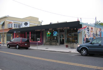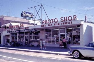 Above left shows the Taylor Family Photo Shop in the early 60's located at 4807 Pacific Avenue in Wildwood. The same shop is pictured to the right, now occupied by the MagicBrain CyberCafe. |
