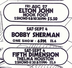 John, The Fifth Dimension, Jim Croce, Neil Diamond, Alice Cooper