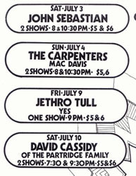 Cooper, Yes, Jethro Tull and David Cassidy were part of the
