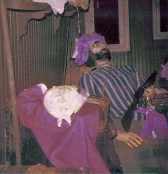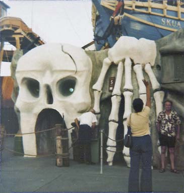 One of the highlights of the Pirate Ship experience was the tilted room, pictured below left. Below right is one of my all time favorite Skua stunts, the Ships Cook. |