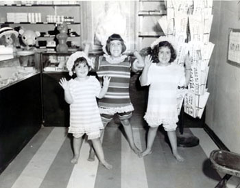 model the old-fashioned swimwear. Pictured left to right are Sherri, Linda and