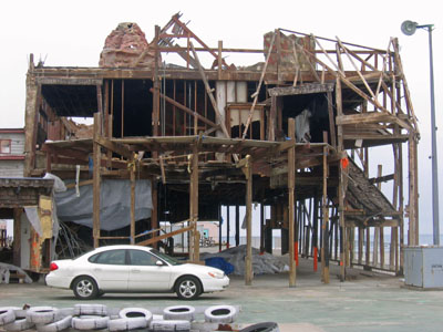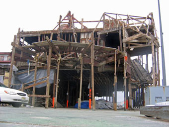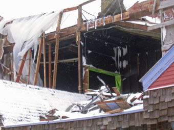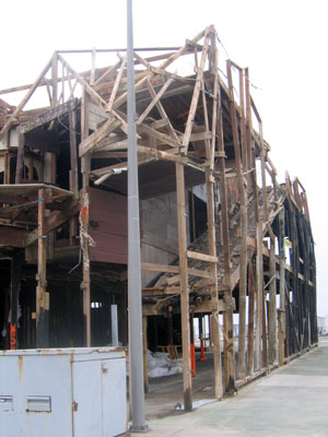 | With high winds and heavy snow not a soul could be found on the old Hunt's Pier. |