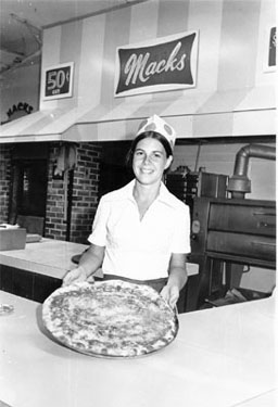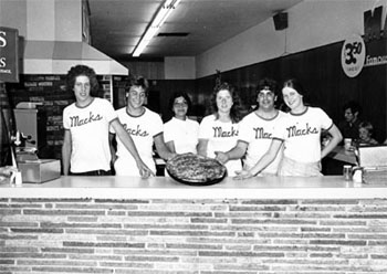 Pictured above right holding two pies is past employee Sharon Myers who worked several summers @ Mack's |